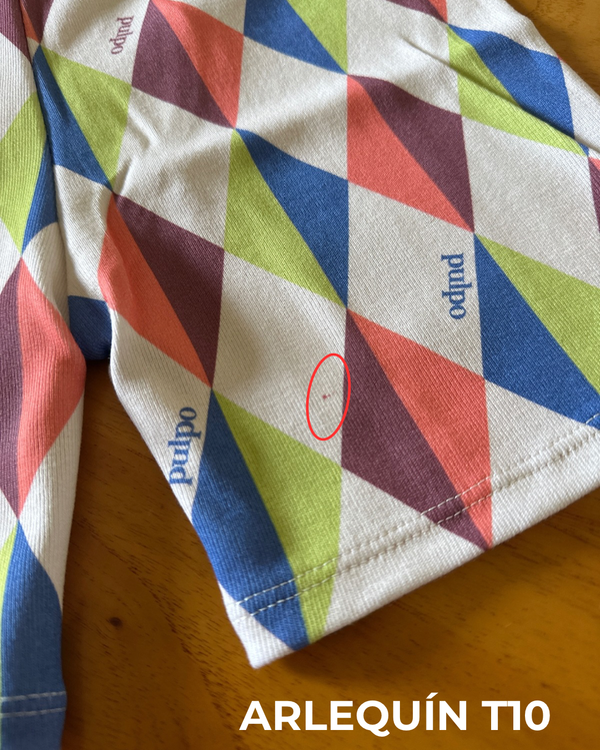 FALLA: mínimas fallas de estampa (un puntito de tinta en delantera de la remera y un puntito en la delantera y en la trasera del short). La nada misma!